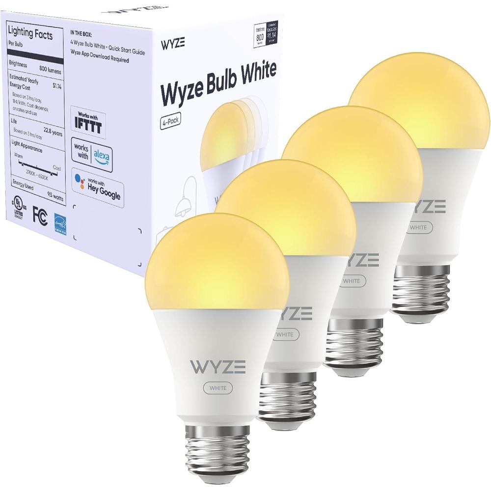 Wyze Bulb White, 800 Lumen, 90+CRI WiFi Tunable-White A19 Smart Light Bulb, Compatible with Alexa and Google Assistant, Two-Pack(4 Pack)