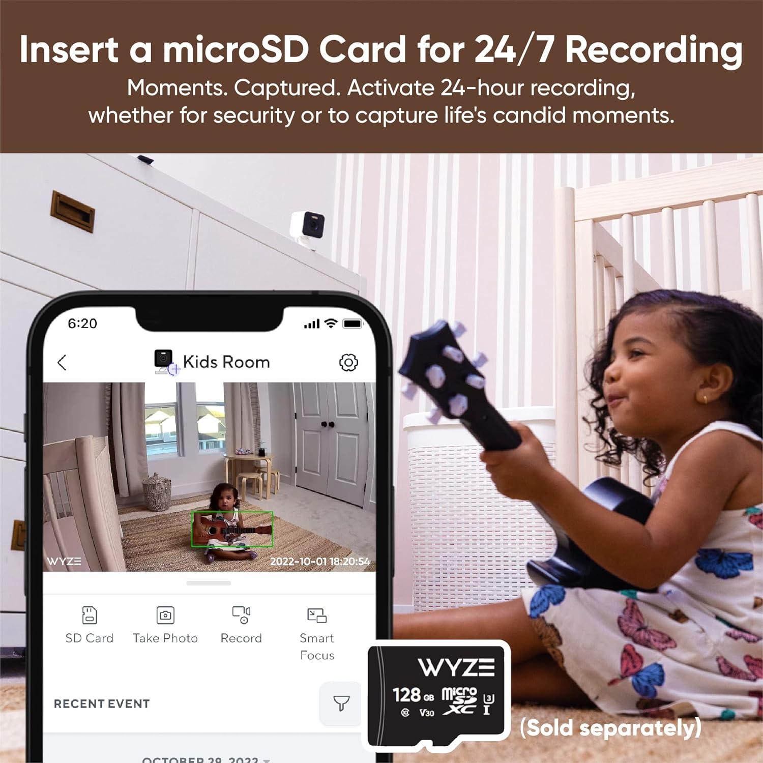 24/7 Continuous Recording: Continuous video recording with a 32GB MicroSD card (sold separately). Just insert the MicroSD into the base of the Wyze Cam and you’re all set.