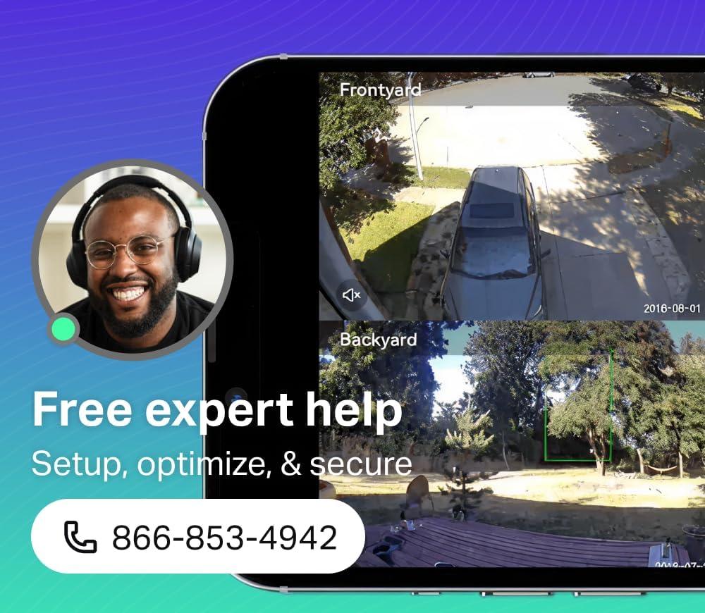 Indoor/Outdoor Security Camera with Bluetooth Setup & Wi-Fi 6 Connection — No need to scan QR codes. Enjoy hassle-free setup with Bluetooth. Maintain a stronger and more reliable connection at greater distances. Wi-Fi 6 router required. Inside, outside, right-side-up, or upside down. IP65 weather resistance lets you mount it anywhere (mounting kit included).