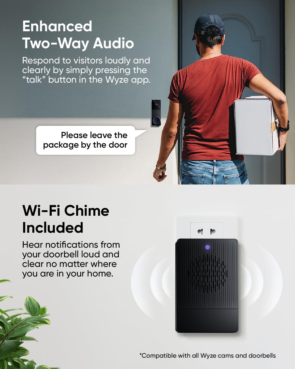 Wi-Fi Chime Included & Two-Way Audio: Hear notifications anywhere in your home. Compatible with all Wyze Cams and Doorbells. Respond to visitors by simply pressing the “talk” button in the Wyze app. Alexa, Google Assistant, IFTTT Support: Convenience and customization are at your fingertips with integrations like Amazon Alexa, Google Assistant, IFTTT, and Wyze Rules.
