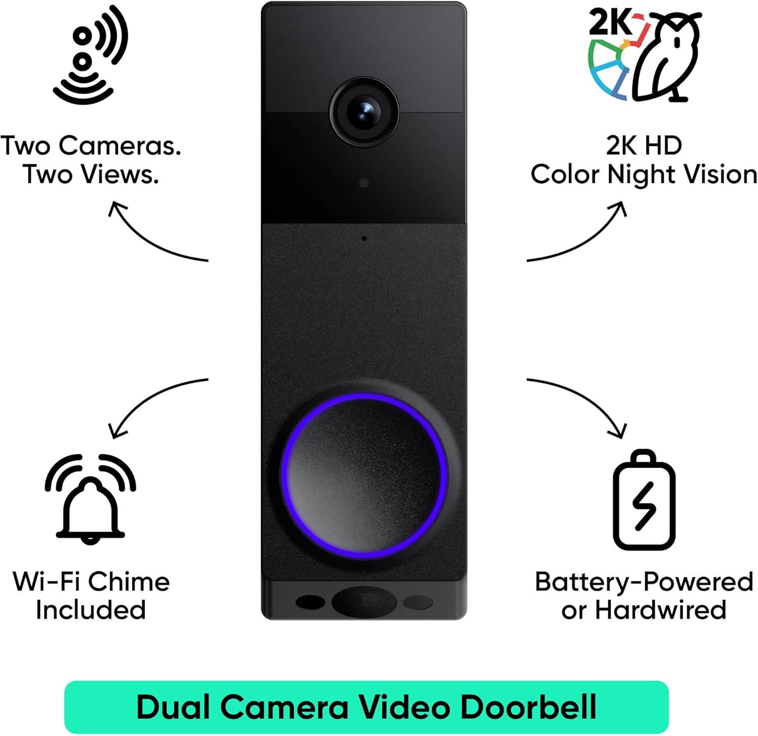 Answer your door from anywhere with our most advanced video doorbell yet. Wyze Duo Cam Doorbell gives you two unique camera views—one for people, and another for packages. 2K video and local microSD storage means you can capture every moment in more detail than ever. Plus, get video doorbell essentials like two-way audio, real-time alerts, and motion-activated voice deterrence. Wi-Fi chime included.